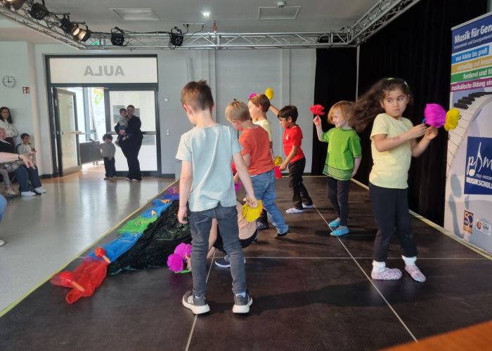 weil ich gerne Musik mache und wir hier viel singen, malen und tanzen. Und das macht mir sehr viel Spaß.“ Nina, 5 Jahre